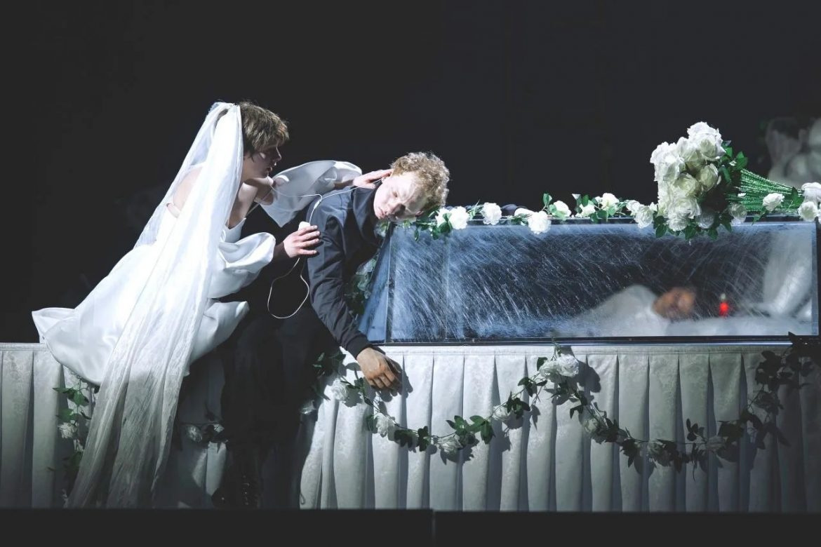 Спектакль вообще можно назвать наглядным пособием по подростковой психологии, с которым не мешало бы ознакомиться каждому родителю и взять себе на заметку. В числе затронутых на подмостках тем — и зависимость от гаджетов (герои даже умирают с наушниками в ушах), и склонность к суицидальному поведению (персонажи не раз «порываются» покончить с собой, оказываясь то с петлей на шее, то с пистолетом у виска), и желание выделиться из толпы (достаточно вспомнить розовые пряди на волосах Джульетты или широкие бесформенные футболки, толстовки и штаны в стиле «оверсайз» — популярный тренд молодежной моды), и раннее начало половой жизни. Да, по пьесе дети Монтекки и Капулетти действительно проводят вместе ночь, но ведь тогда и замуж выдавали гораздо раньше, нежели сейчас. Грубо? Резко? Нелицеприятно? Не то слово! Но это же правда — вся как она есть, без «лакировки», напрасных иллюзий и прикрас.