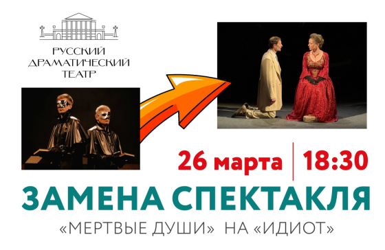 Уважаемые зрители, 26 марта вместо фантасмагории «Мертвые души» будет показана драма «Идиот».