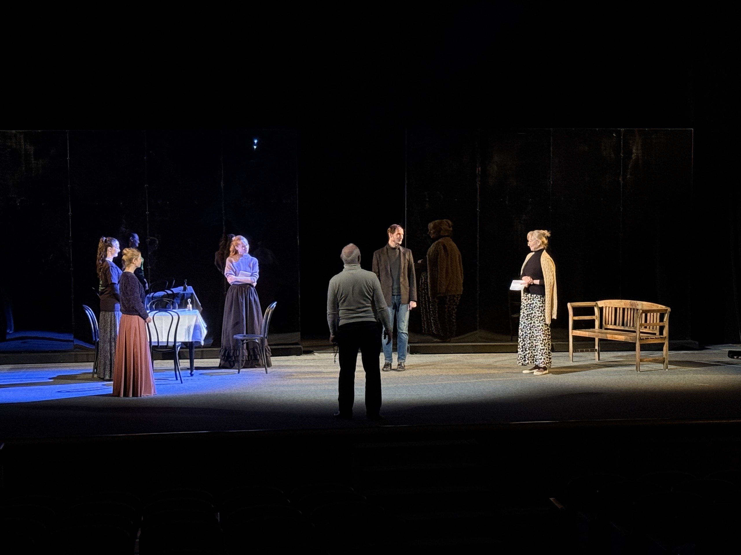 — работа идет только на сцене, даже индивидуальные репетиции,