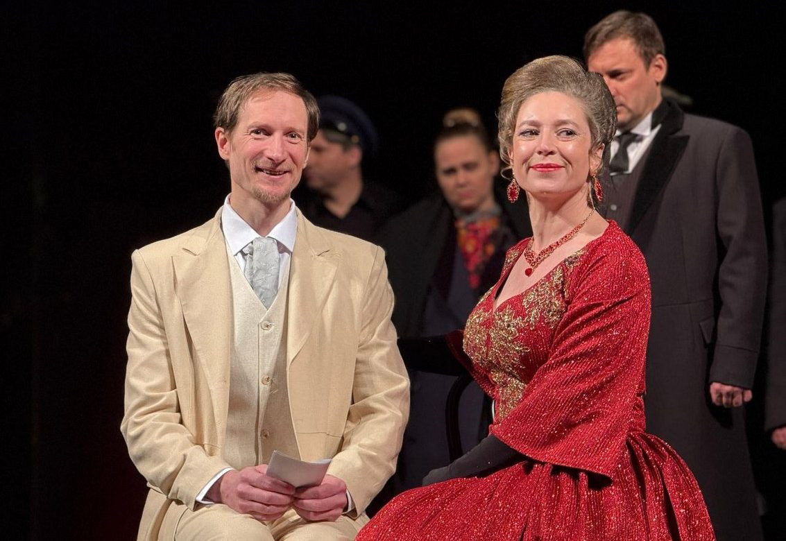 Но если эти двое «ныряют» в повествование с самого начала постановки, отчаянно, не мешкая и сразу, Настасья Филипповна появляется лишь во второй половине первого действия, ранее зрители только слышат о ней из уст окружающих. Режиссер как бы оттягивает момент, сохраняя интригу и не торопясь вводить ее «в кадр». Из характеристики, данной героине тем же князем Мышкиным, мы узнаем, что это должна быть женщина красивая, гордая, с глазами, говорящими о страдании. Он словно задает собственную программу развития образа, а вот следовать ей или пойти по иному пути — тут уж дело за актрисой, и заслуженная артистка Чувашии Юлия Дедина не упускает возможности воспользоваться этим правом. Нет, не страданием она берет, и даже не послевкусием от него, а необузданной тягой к жизни, желанием жадно вкушать каждый ее миг и неукротимо мчаться в неизвестность подобно тому, как катится под гору сверхскоростной поезд. Ее роль — один сплошной импульс, порыв, разгон, и пусть в какие-то моменты хотелось бы больше сосредоточенности, вдумчивости, обстоятельности, внешней статики в обмен на внутреннюю динамичность и рефлексию, столь быстрый темпоритм проживания сценического времени искупает все. И хотя зрители помнят, что роковой финал неминуем, и рано или поздно этот экспресс неизбежно сойдет с рельсов, мир вокруг ничуть не меркнет, а на ум приходят согревающие и очень просветленные строки Федора Достоевского: «Дело в жизни, в одной жизни, — в открывании ее, беспрерывном и вечном…»