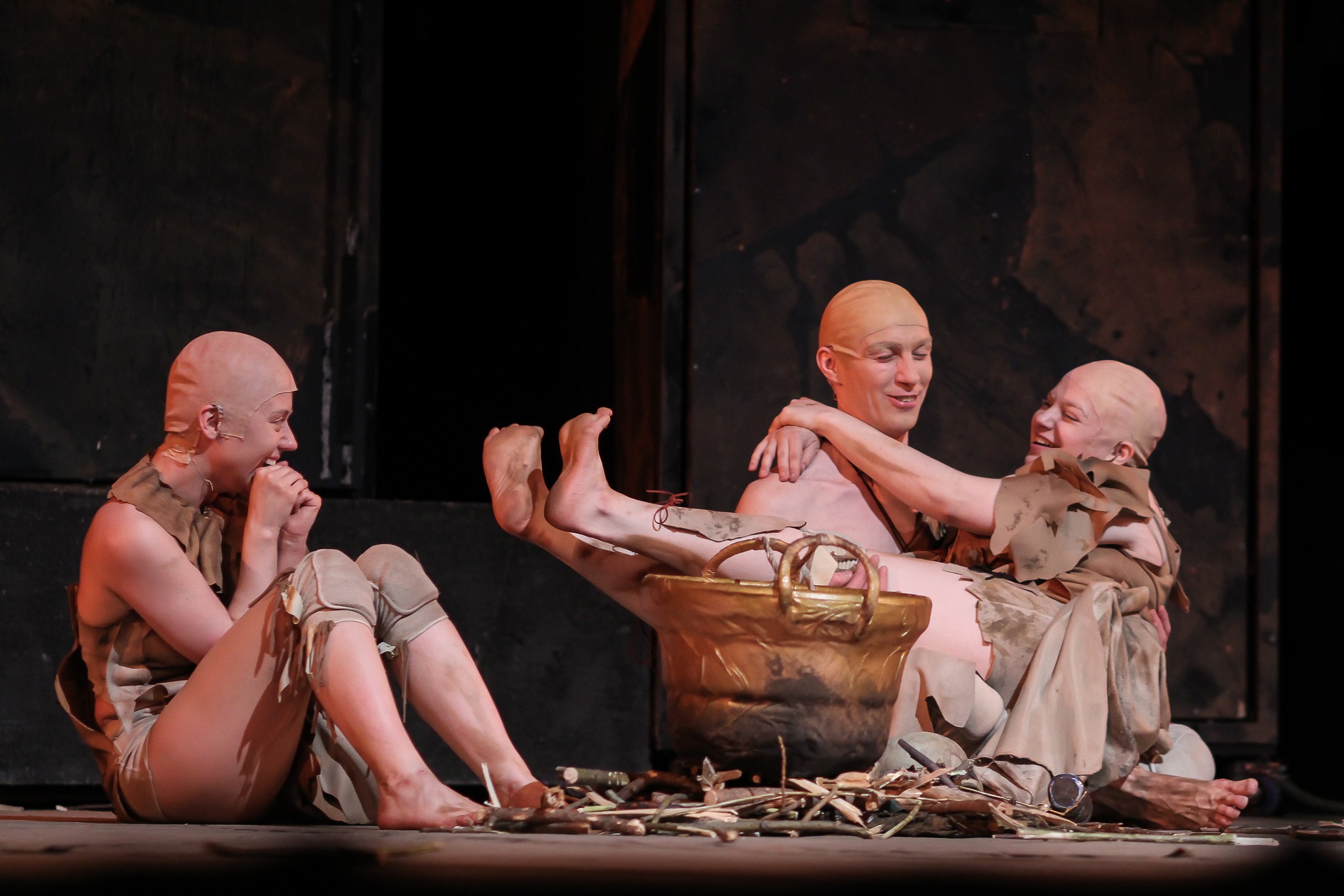 То ли страшная техногенная катастрофа, то ли очередная мировая война практически уничтожили человечество. Те, кому удалось выжить, оказались отброшены в начало эволюционной цепи: как первобытные люди, главные герои пьесы Отец, Мать и Дочь собирают коренья, спят, где придется, живут, следуя зову основных инстинктов.